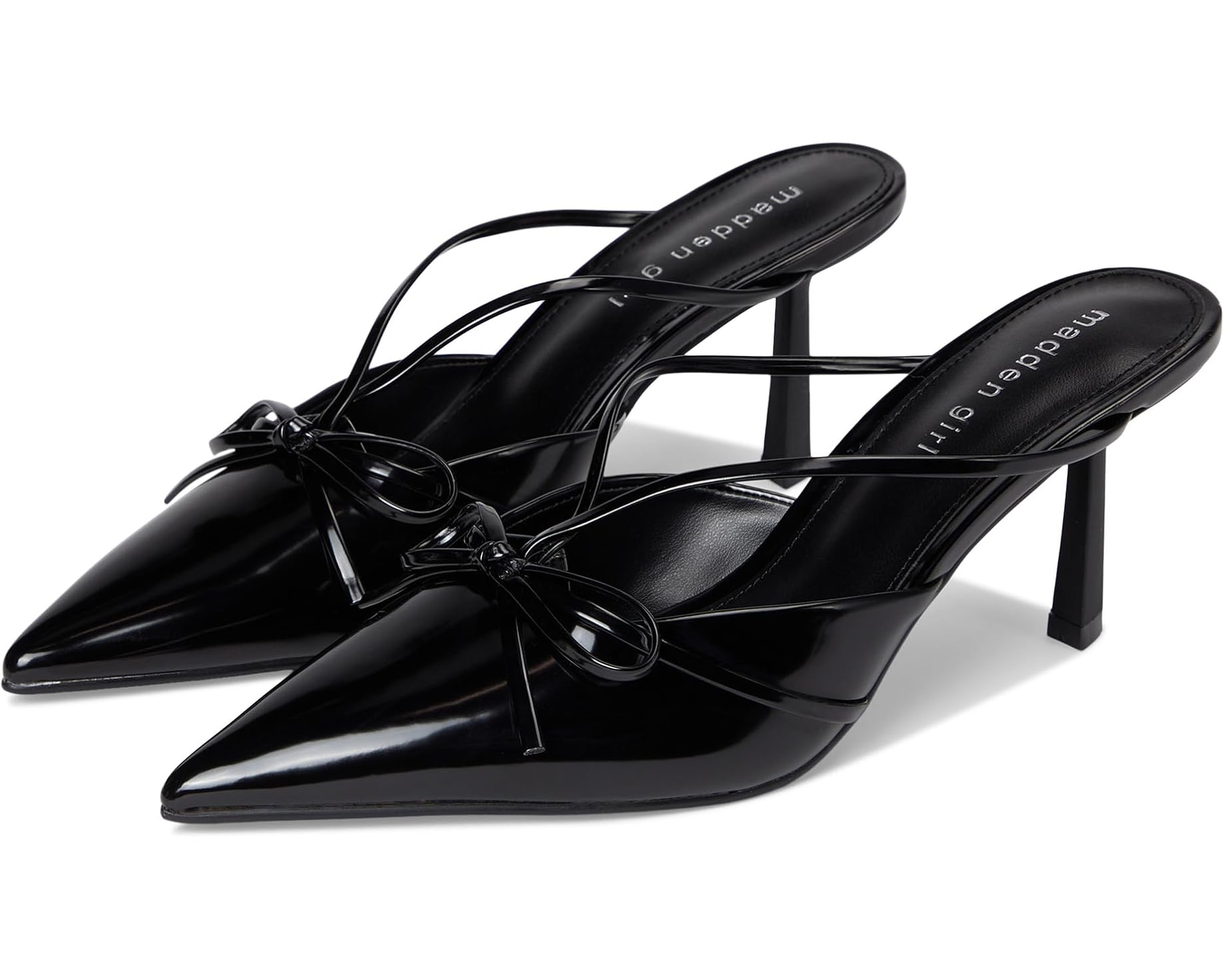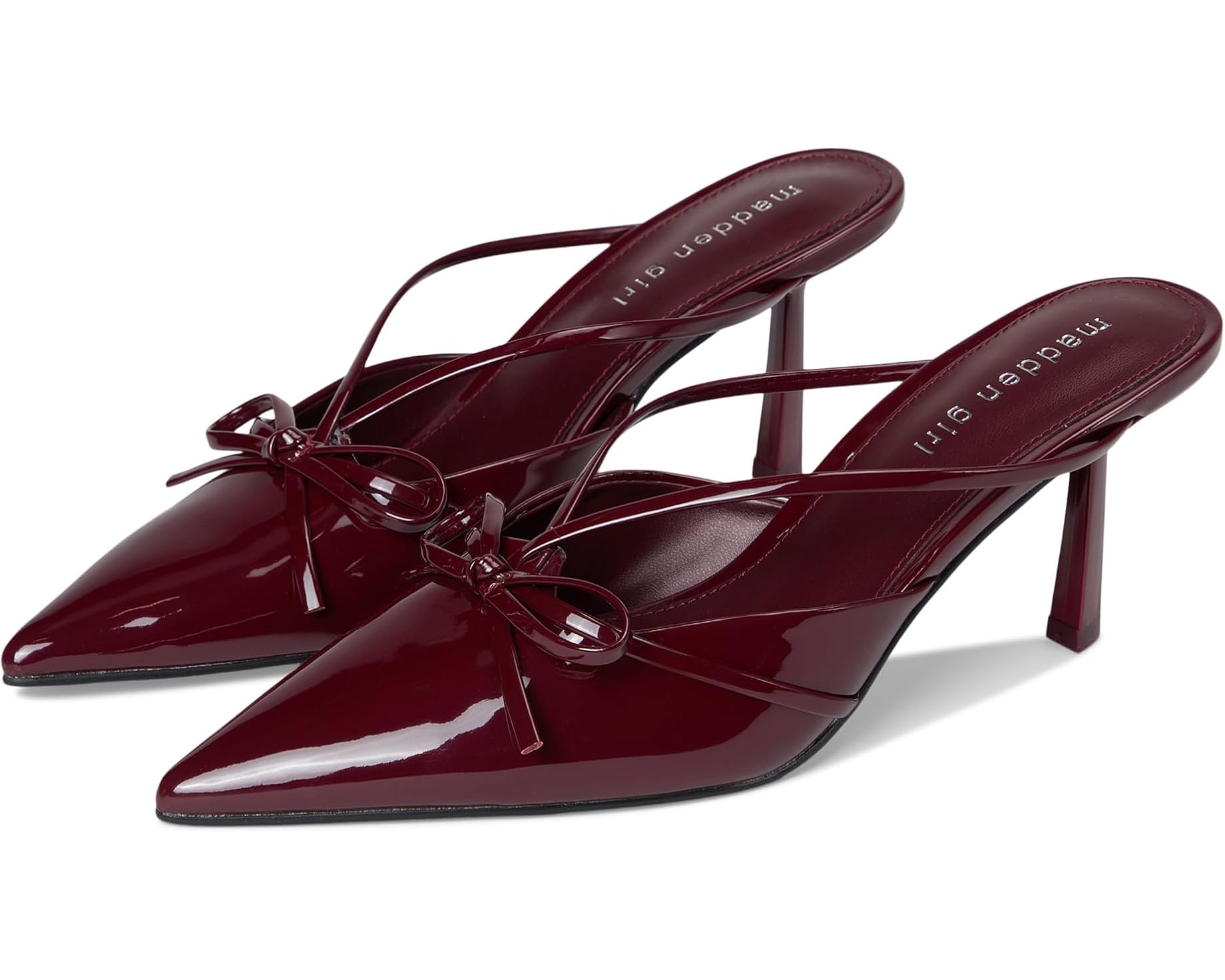 Perfectamente elegantes, los zapatos de tacón Bells de Madden Girl® crean una silueta femenina con punta puntiaguda y tacones de aguja de media altura. Estas sandalias de tacón están confeccionadas con plantilla y forro de piel sintética. La parte superior de piel sintética presenta un detalle de lazo y son fáciles de poner y quitar. Desde tus vestidos de fiesta hasta tus looks profesionales, estos zapatos de tacón sin cordones son perfectos para realzar tus atuendos y looks.